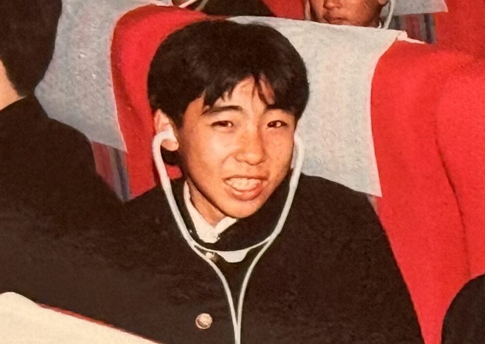 中学の修学旅行で初めて沖縄に向かう機内。倒れる前です。